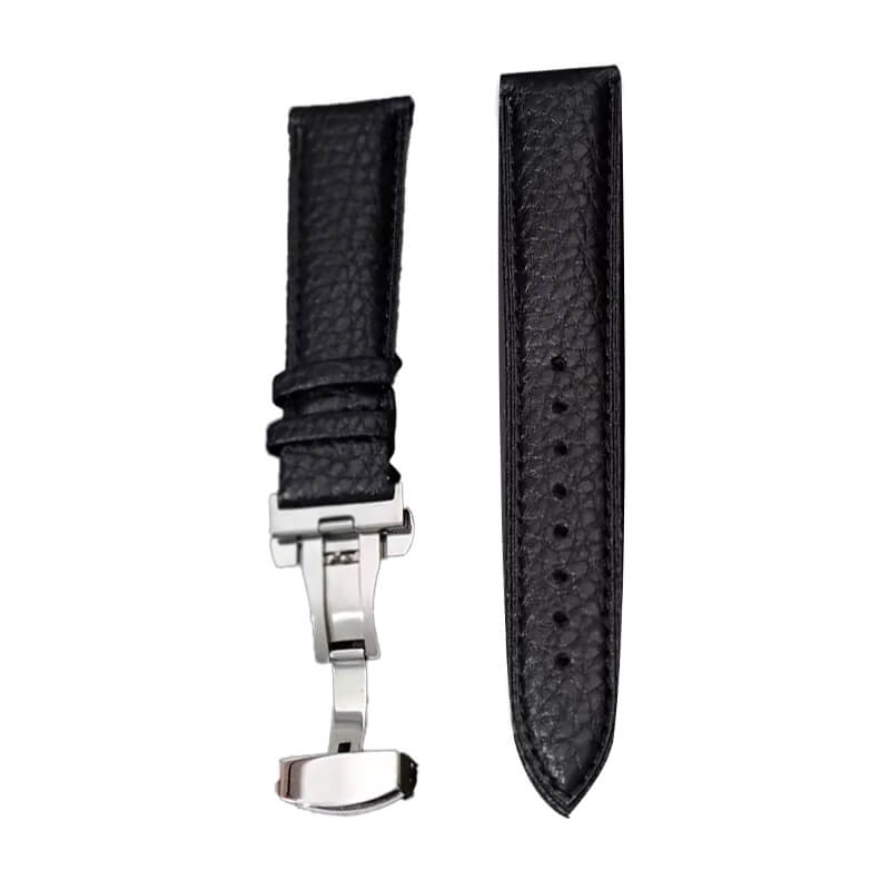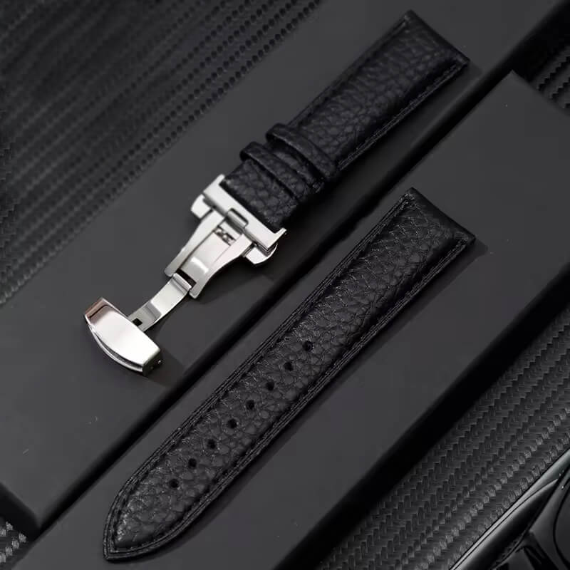 Renueva tu reloj y transforma tu estilo con esta correa de cuero negra, perfecta para quienes valoran la calidad y la distinción