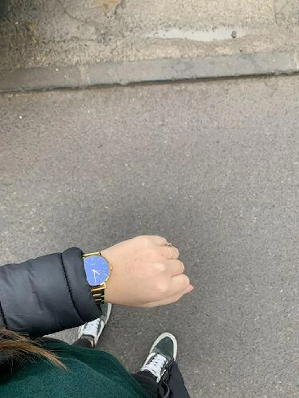 Diseño moderno y elegante con caja delgada y pulsera dorada que aportan un brillo sofisticado. Su esfera azul profundo con acabado metálico crea un contraste refinado con los marcadores dorados, ofreciendo una estética femenina y contemporánea ideal para cualquier ocasión.